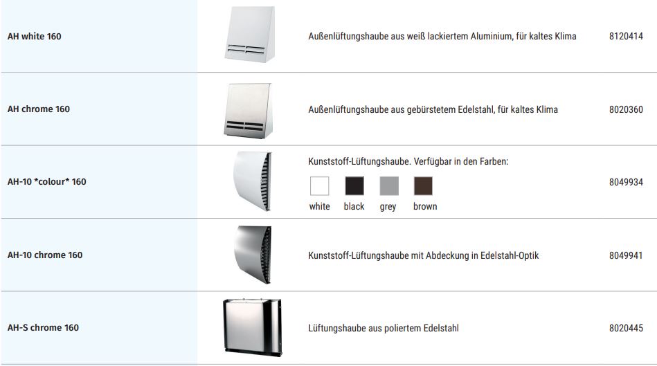 Das Vorbereitungsset besteht aus der Außenhaube (weiß oder Edelstahl) und der Wandeinbauhülse (50cm oder 70cm). Splitten Sie Ihren Blauberg A50-1 inVorbereitungssetundFertigstellungsset, wenn Sie während der Rohbauphase Ihres Neubaus nicht bereits die Technik auf die Baustelle mitgeliefert haben möchten.