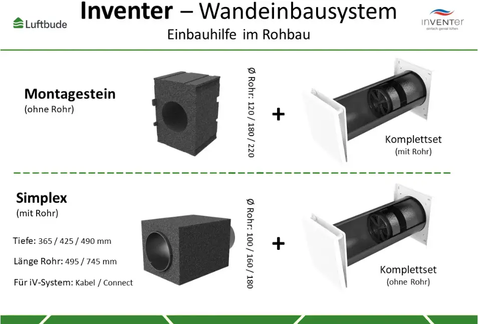 Inventer Wohnraumlüftung iV14 Zero – 17-23 m³/h – Wärmerückgewinnung – Komplettset – energieeffizient – 1001-0185