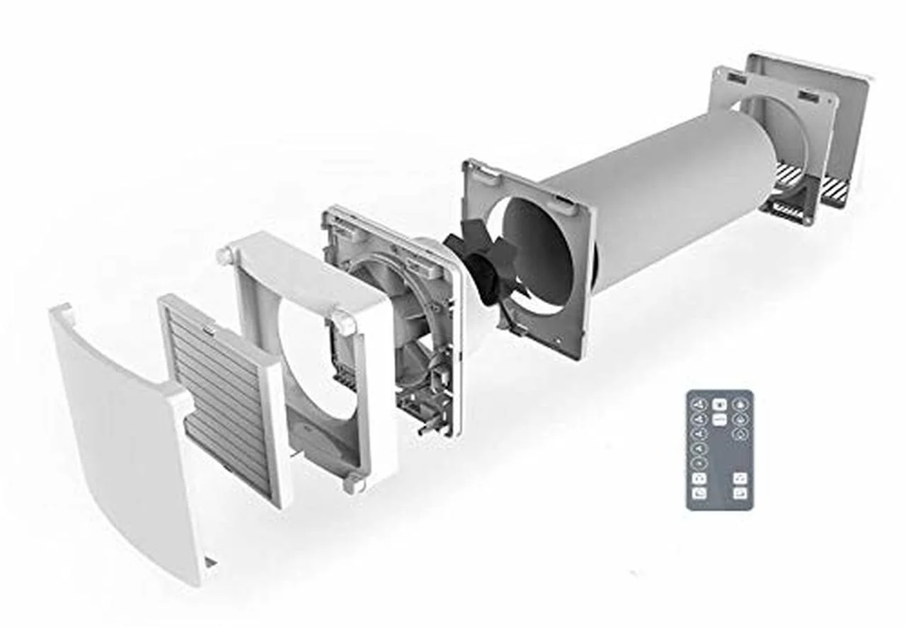 Ein dezentrales Lüftungssystem besteht meist aus mehreren Einzelgeräten, die gemeinsam für eine Be- und Entlüftung des gesamten Wohnraums sorgen. Dezentrale Lüftungsanlagen mit Wärmerückgewinnung sind alle nach einem ähnlichen Schema aufgebaut und bestehen aus sechs Grundbestandteilen: