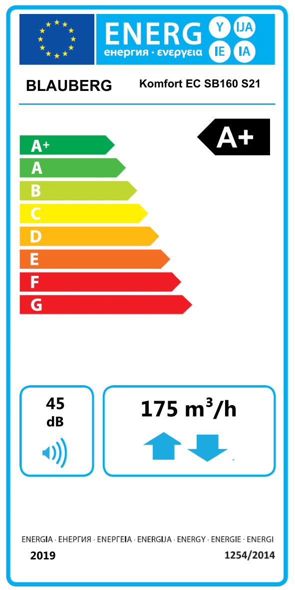 Blauberg Wohnraumlüftungsanlage Komfort EC SB 160 S14 – 200 m³/h – 85-93% WRG – 230 V – DN 125 – F7/G4 Filter – Wandmontage – leise – 8021633