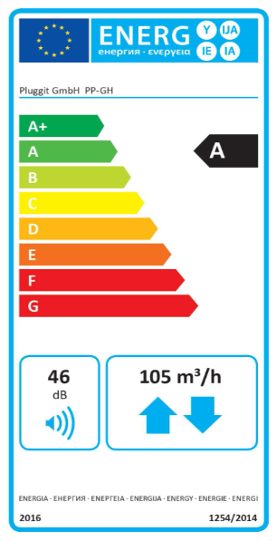 Pluggit Wohnraumlüftungsanlage PluggPlan Avent GH – 207,6 mm flach – 85–105 m³/h – WRG 80,2% – NW95 – Deckenmontage – PP-GH
