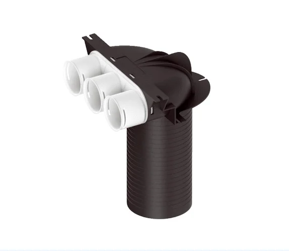 Ermöglicht eine platzsparende und effiziente Zusammenführung von zwei Flexrohren (DN 75) zu einem einzigen Ventilanschluss (DN 125).