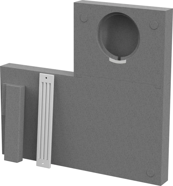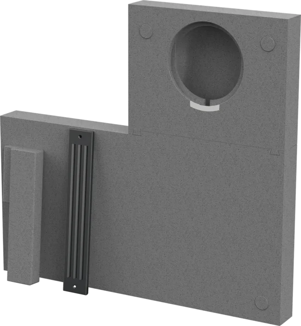 Der Einbaustein bildet das Herzstück des Sets und dient der sicheren Aufnahme der runden Wandhülse. Diese Komponente ist entscheidend für die Stabilität und die korrekte Positionierung der Lüftungseinheit in der Wandöffnung.